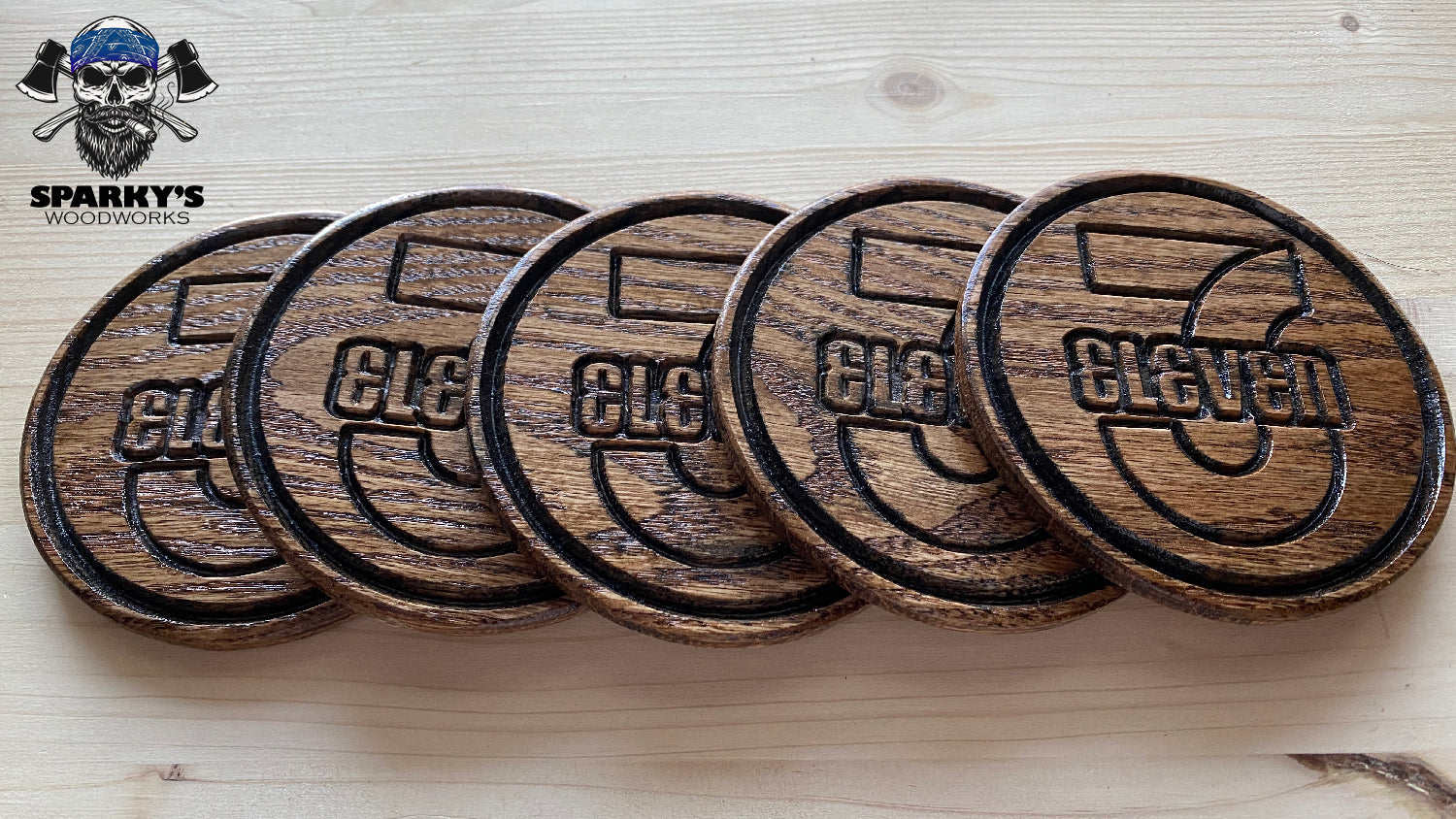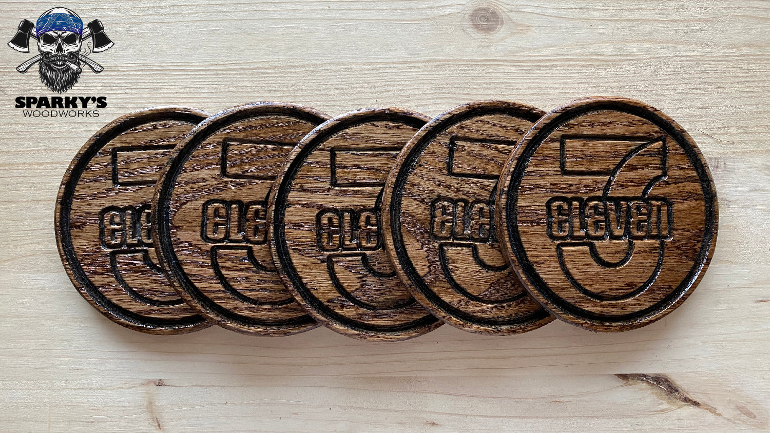 Set your drinks down in style with these quirky 311 7-11 Wood Coasters! Each set includes five solid Cherry coasters, hand-crafted and sanded to perfection. At approximately 5" round, they're the ideal size for mugs, glasses, and everything in between. Choose between rich Early American or sleek True Black stain to match your vibe. Backed with genuine USA-made upcycled cork to protect your surfaces, these coasters prove that functional can be fun. A handmade touch that keeps your furniture safe while adding personality to any room.