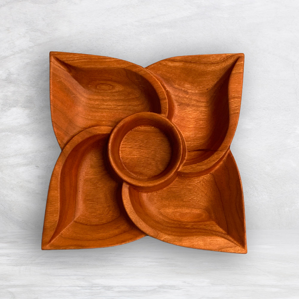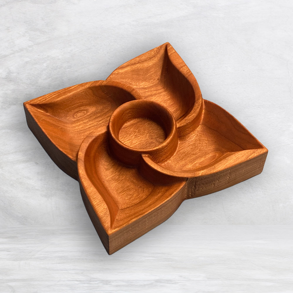 3D Flower Tray 1 - Size Small - Precision Carved Solid Cherry Wood Tray - Made in USA