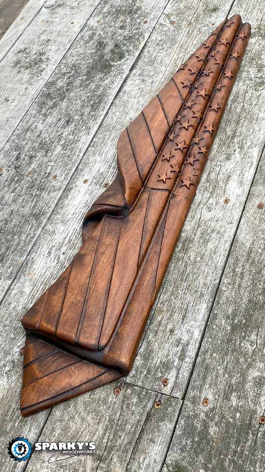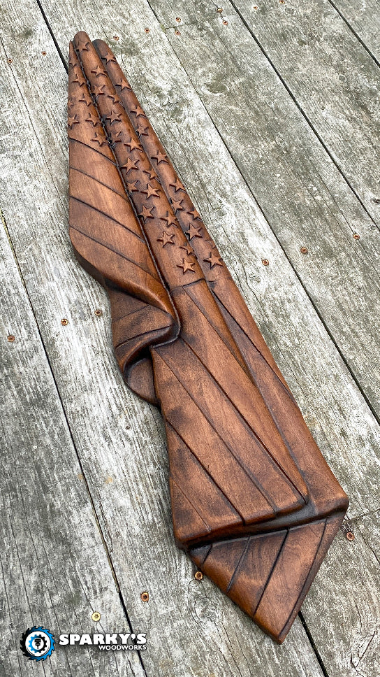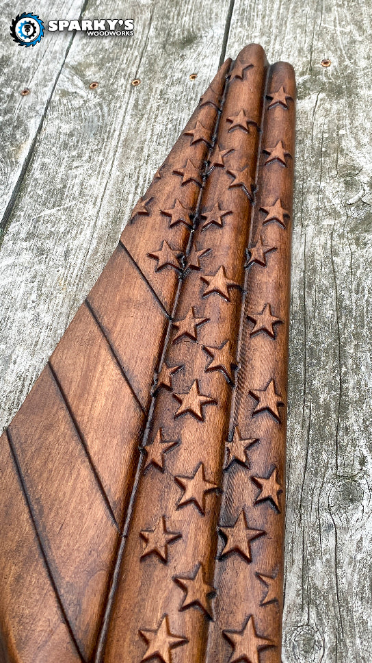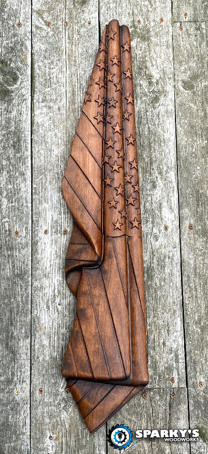 3D hanging American Flag crafted from 2" thick solid Cherry.
