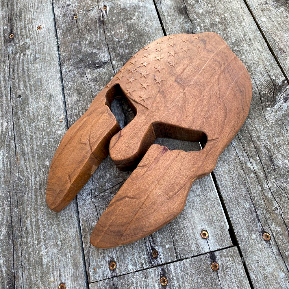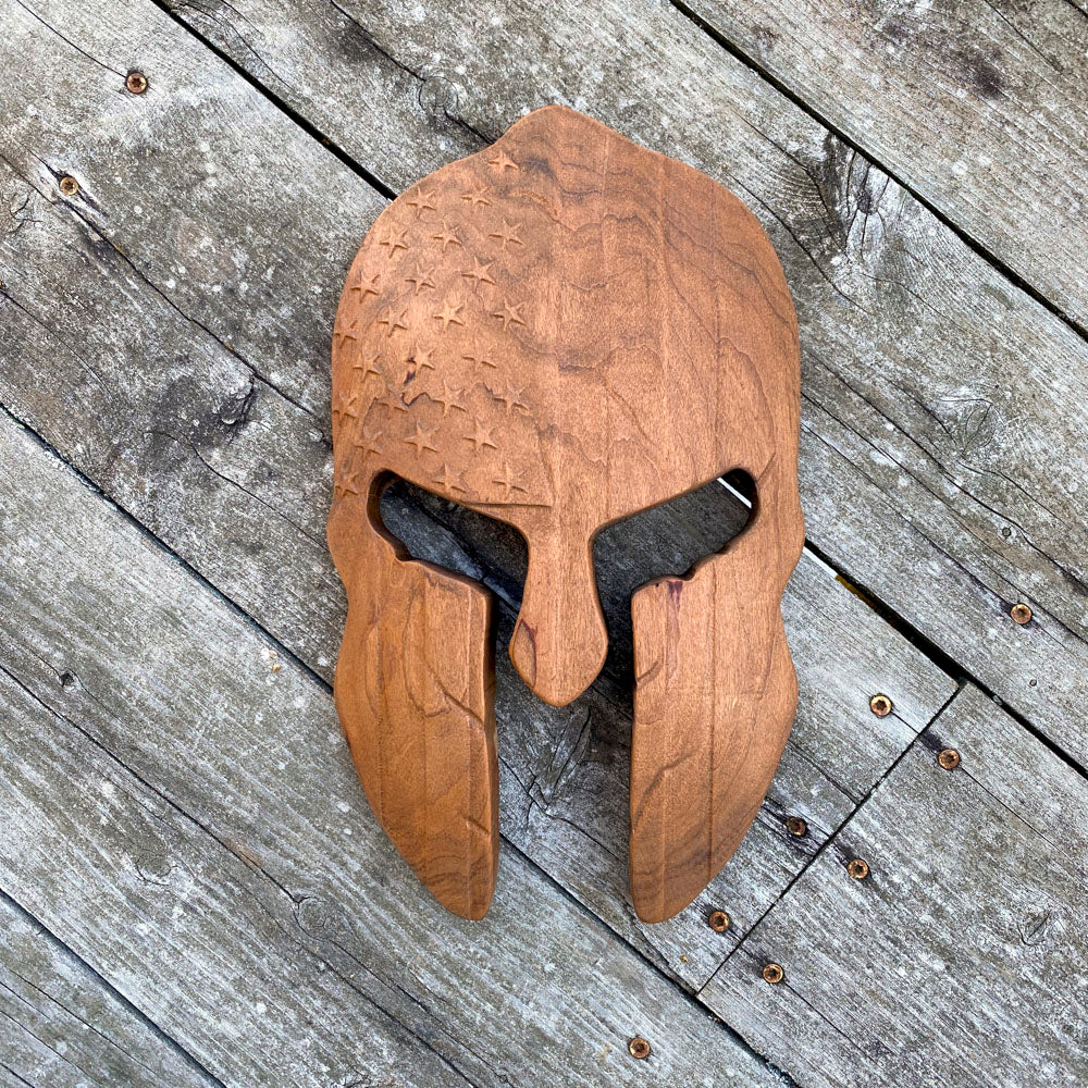 3D USA Spartan Helmet #1 - Precision Carved Solid Cherry Sign Art - Size Medium - Natural - Made in USA