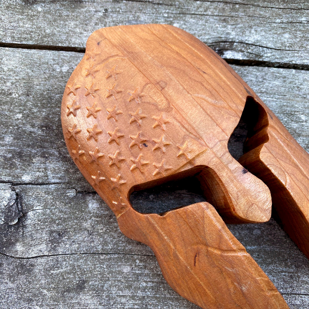 - Precision 3D carving from 2" thick solid Cherry.