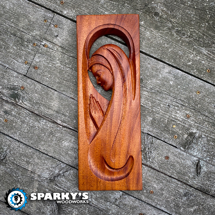 3D Virgin Mary in Mahogany