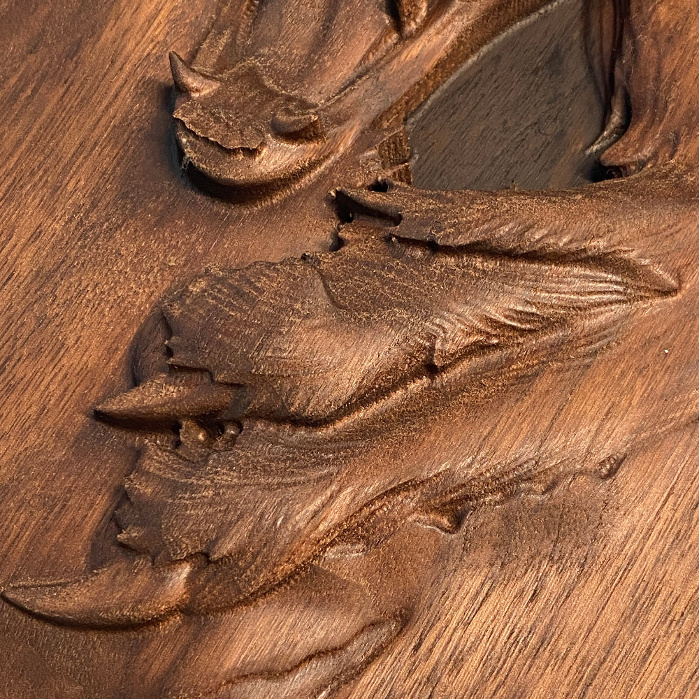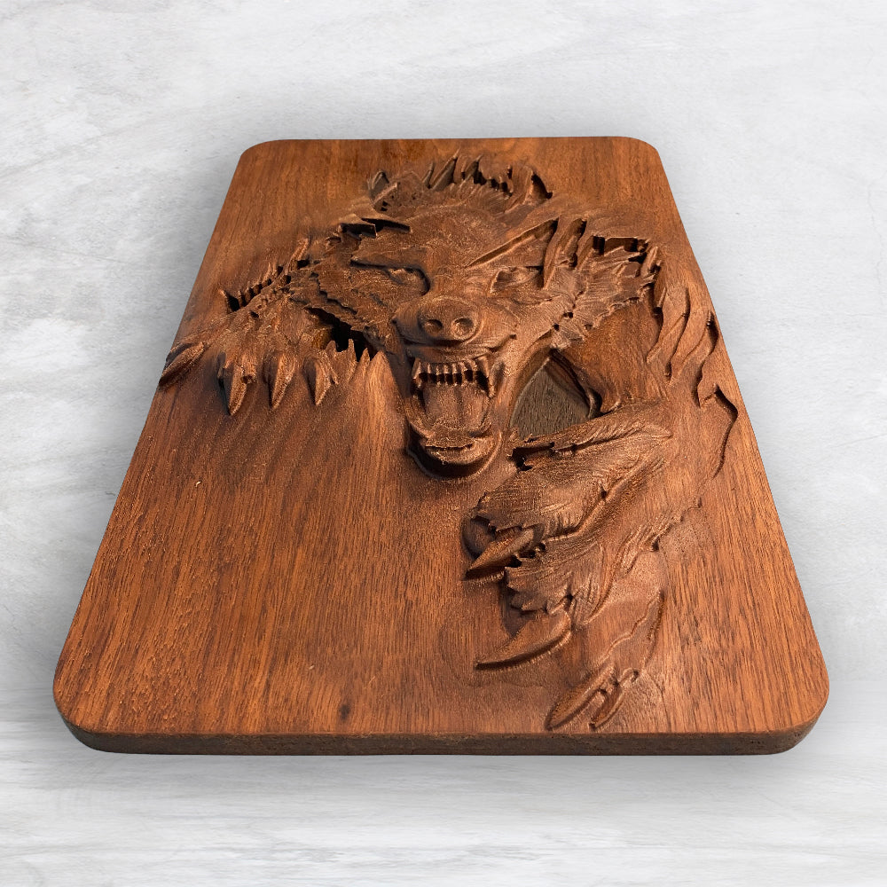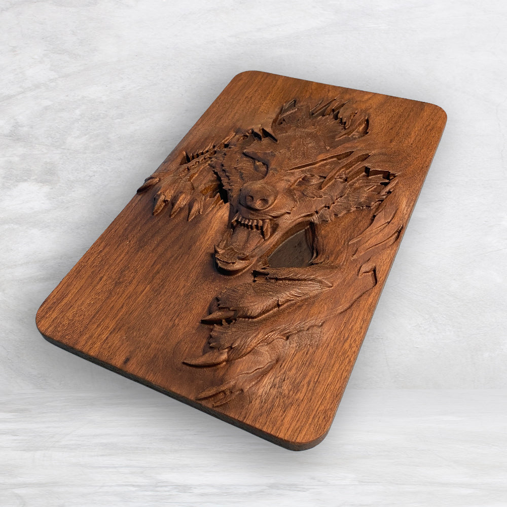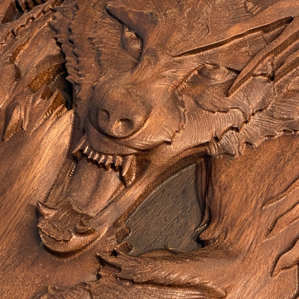 3D Wolf "Mallister Growley" Wood Carving - Precision Carved Solid Premium Walnut Carved Art - Made in USA