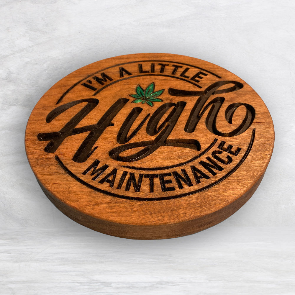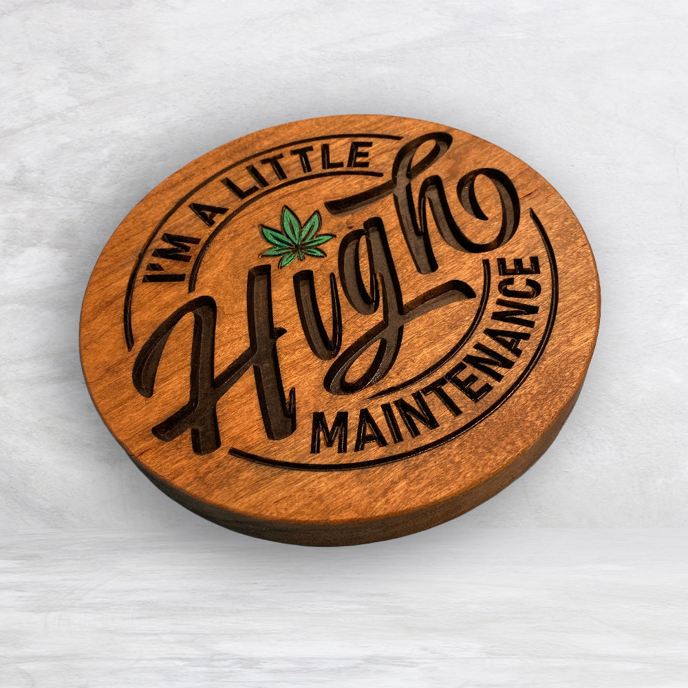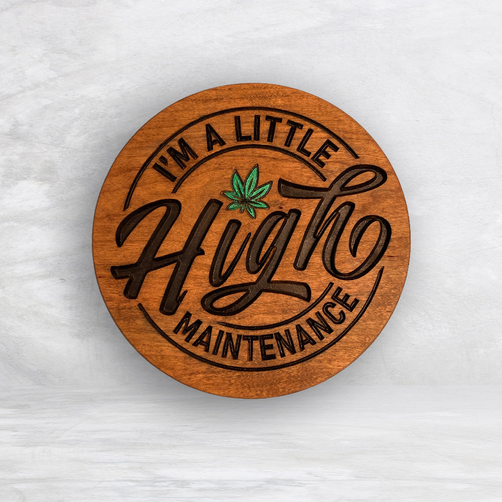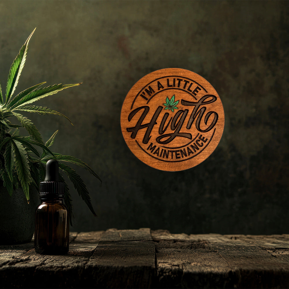 I'm a Little HIGH Maintenance - Precision Carved Solid Cherry Funny 420 Canna Art Sign - Made in USA