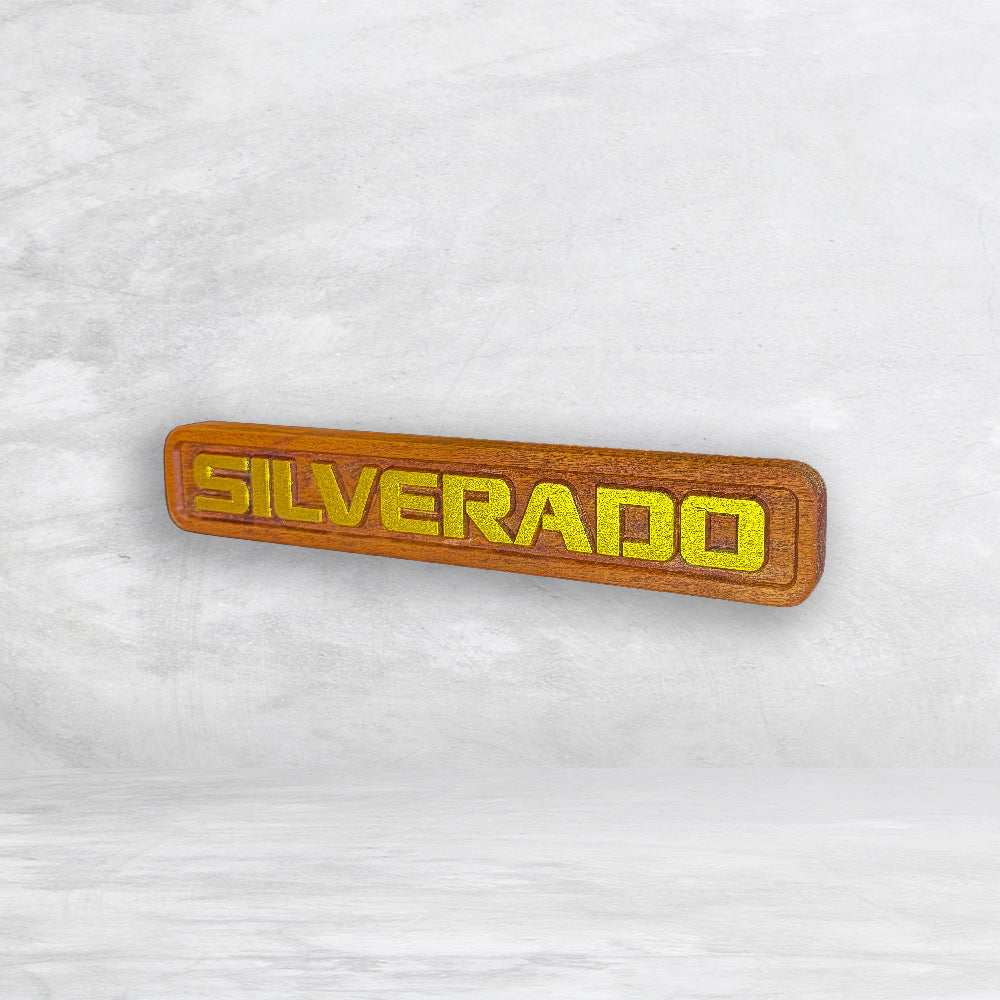 This Chevy Sierra plaque is a precision-carved solid cherry wood plaque that brings artisanal craftsmanship to any space. Measuring 11.5" wide by 2" tall, this 3/4"-thick piece is hand-sanded, stained, and finished with metallic paints for a refined, dimensional look. Each plaque is meticulously hand-painted and made in the USA, making it a distinctive accent for home décor or a meaningful gift for those who appreciate quality woodcraft.